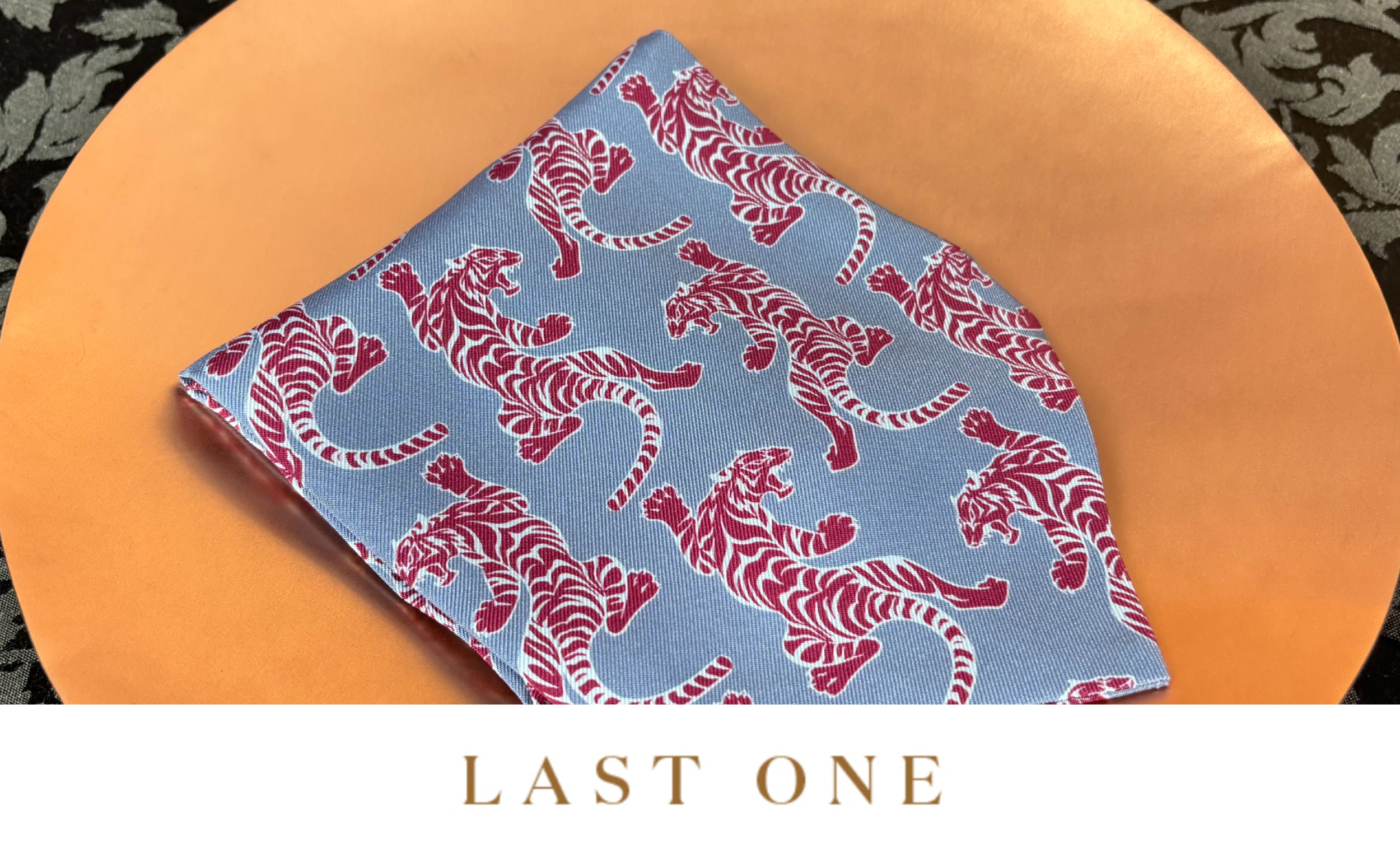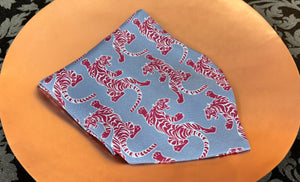 Dusky Blue with Mulberry & Powder Blue Tigers Printed Silk Cravat