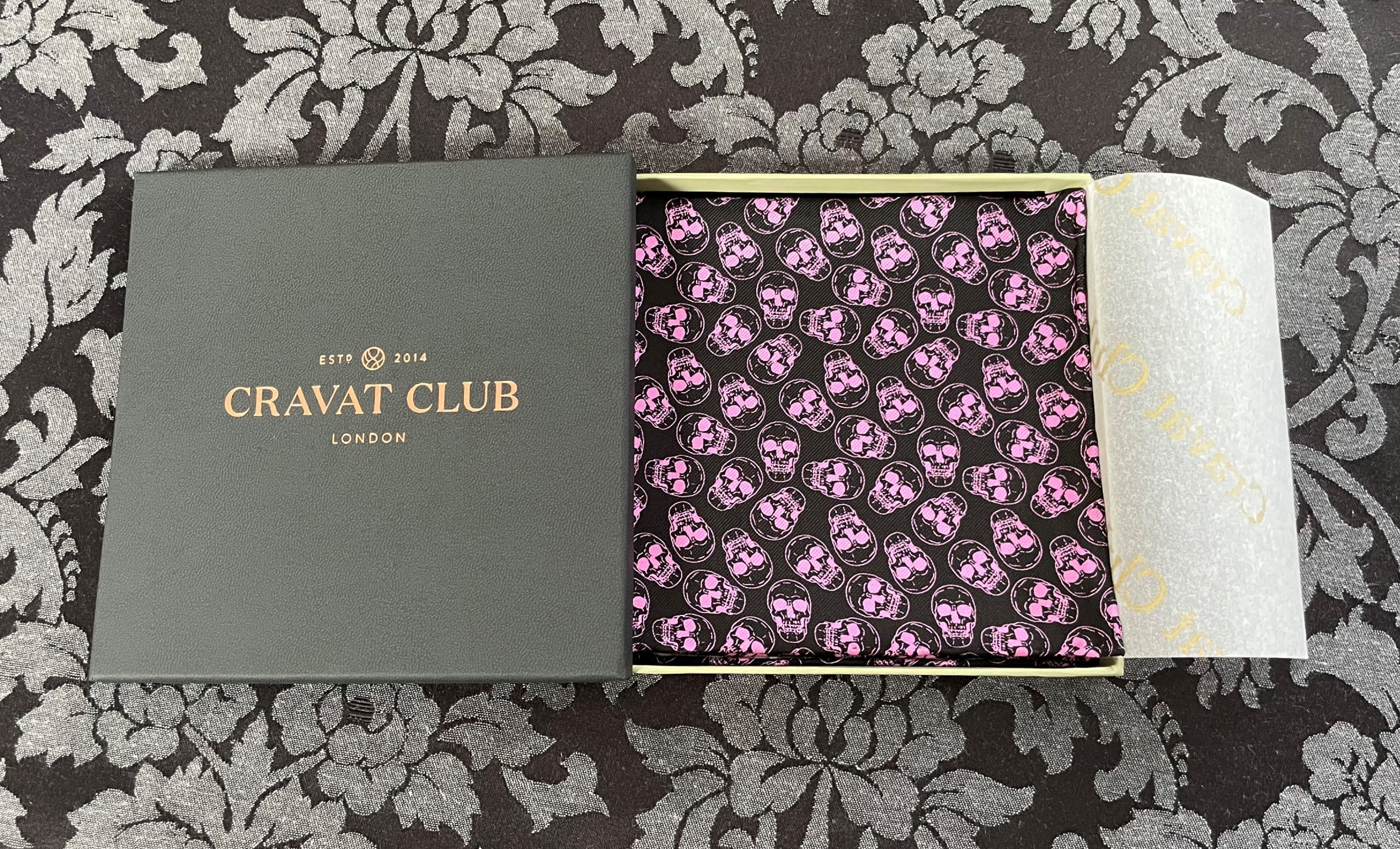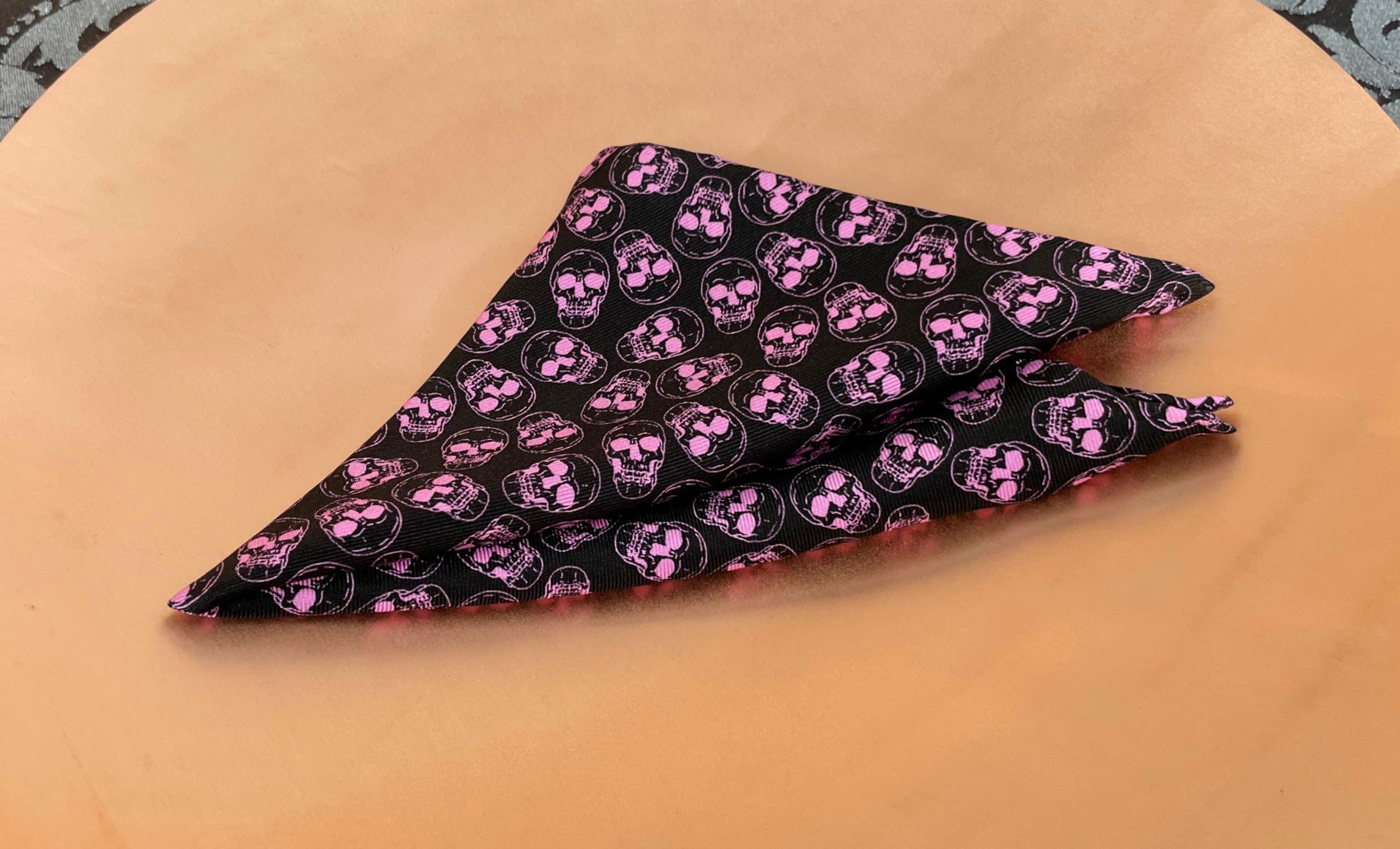 Pitch Black with Candy Pink Skulls Printed Silk Pocket Square