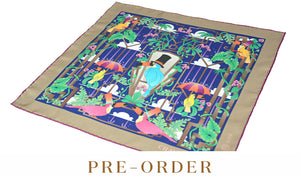 Sapphire Blue with Jungle Green & Cocoa Brown 1920s Art Deco Style Toucan Tropical Island Scene