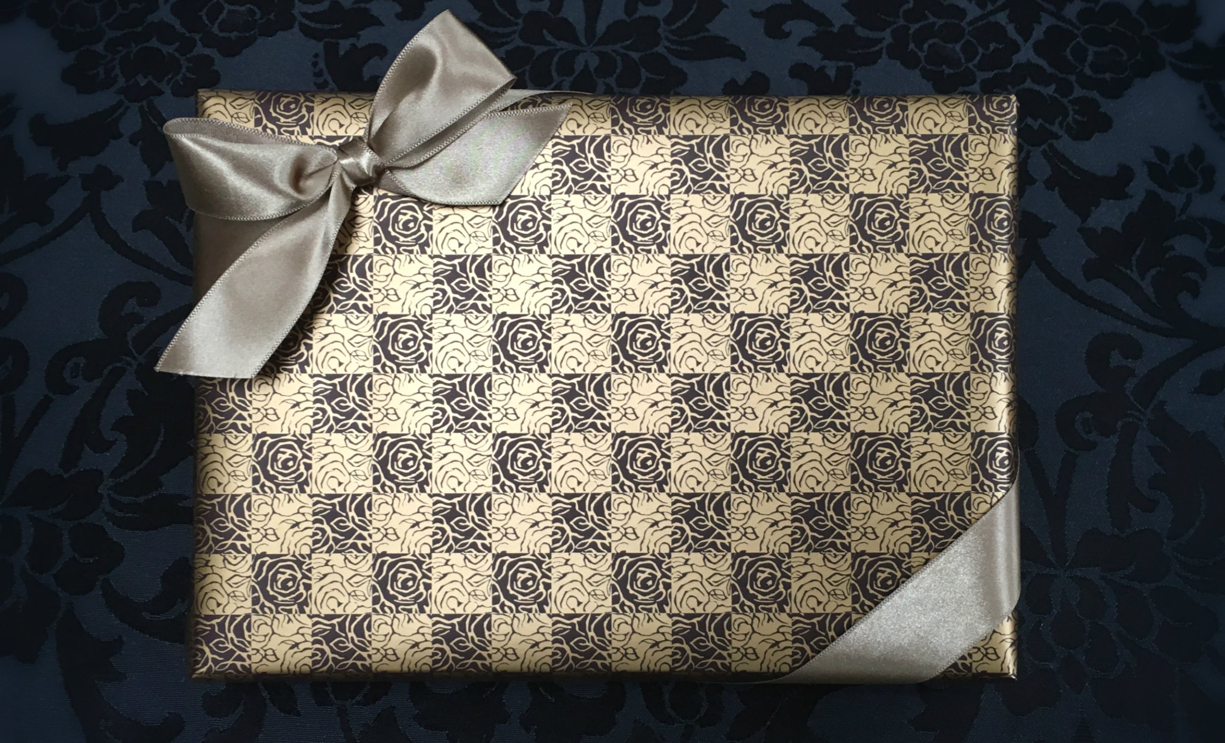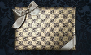 Luxury Brown & Gold Wrapping Paper with Your Choice of Satin Ribbon