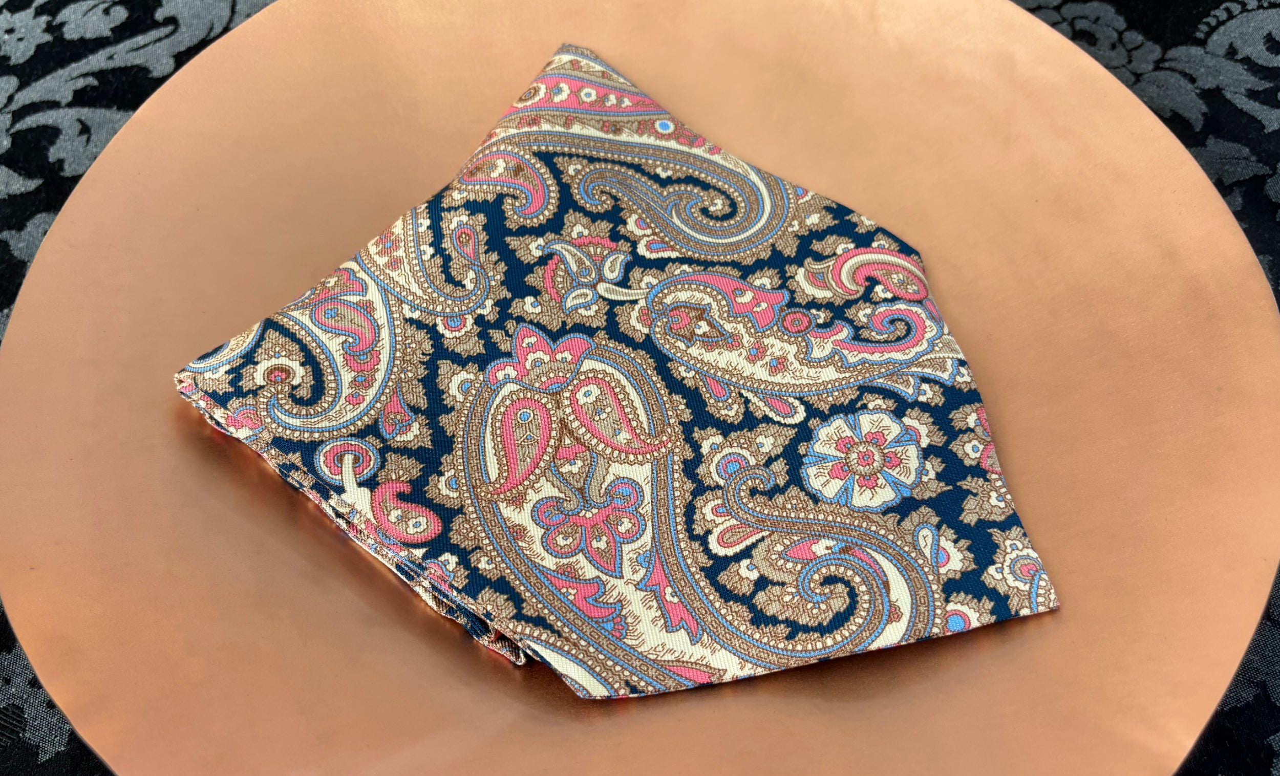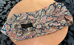 Navy with Smoky Powder Blue, Vanilla Cream & Orchid Pink Large Paisley Pattern Printed Silk Cravat
