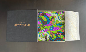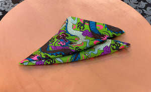 Earth Green with Oak Brown, Violet, Paradise Blue, Sorbet Pink & Cream Japanese Dragon Print Silk Pocket Square