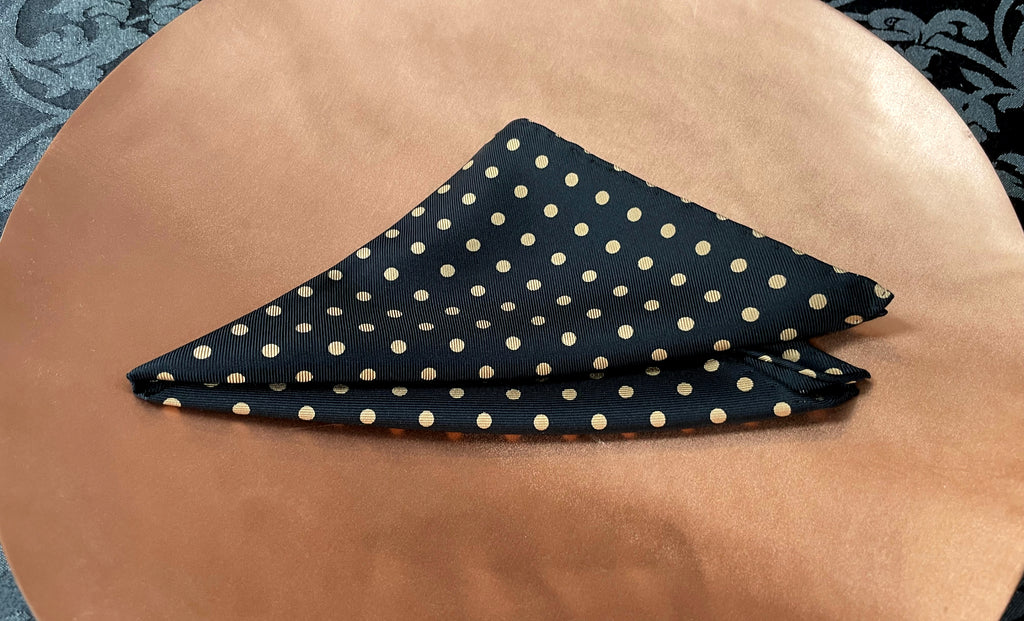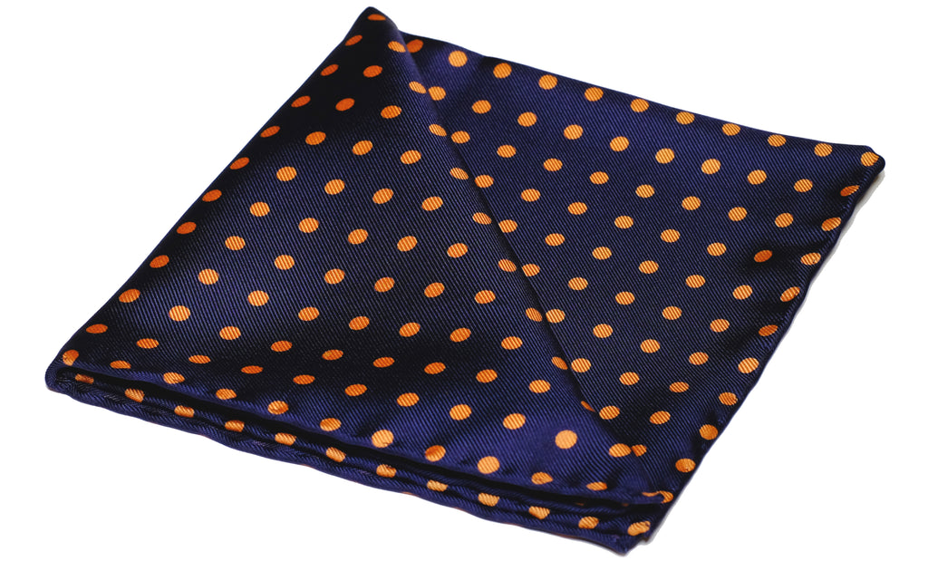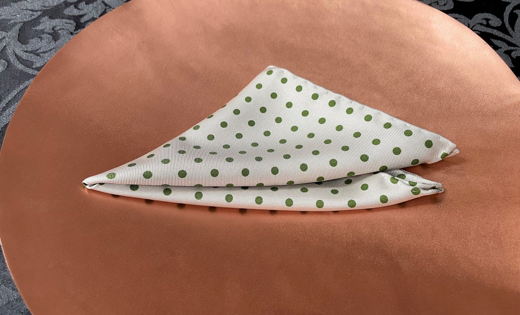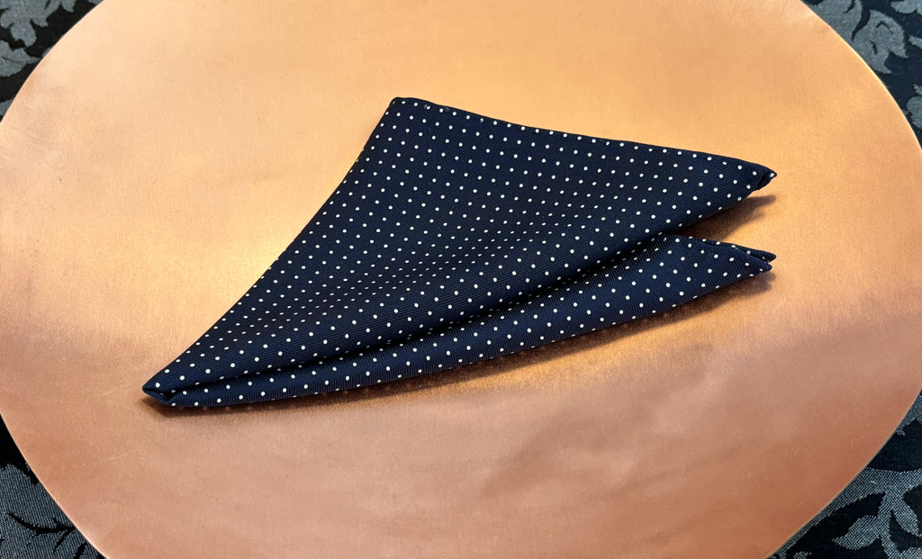 Our gentlemen's polka dot pocket squares and handkerchiefs are masterfully hand printed using age-old traditional silk screen printing techniques.