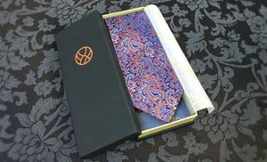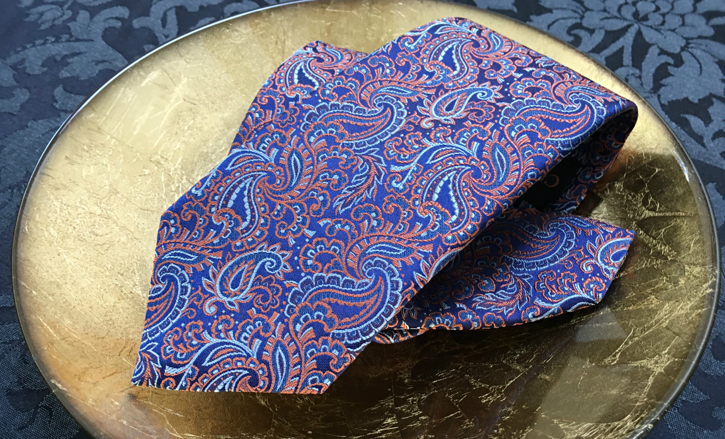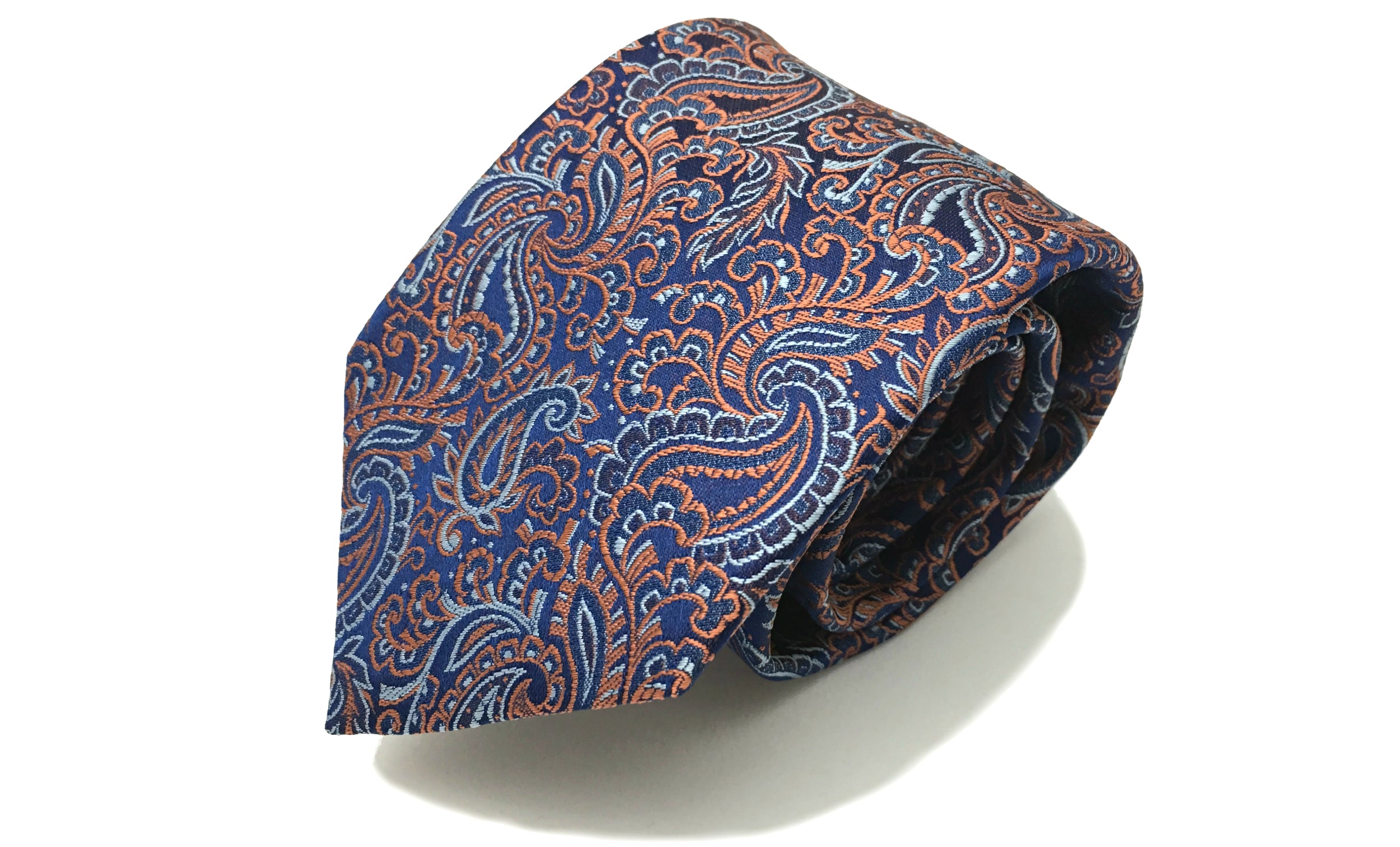 Midnight Navy with Persian Orange & Ice Blue Dragon-Themed Paisley