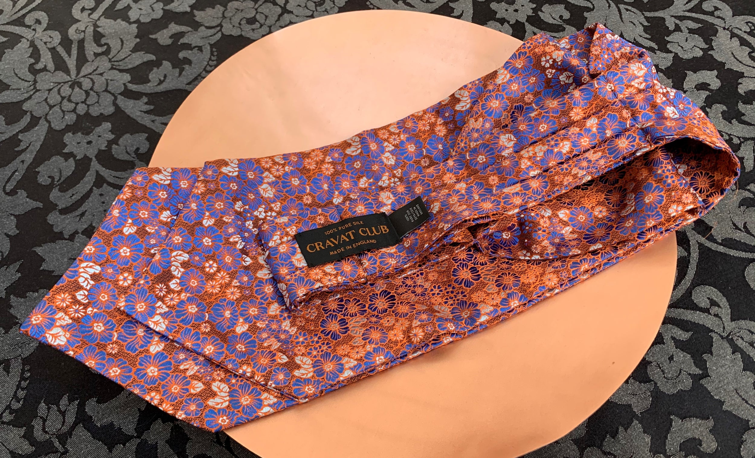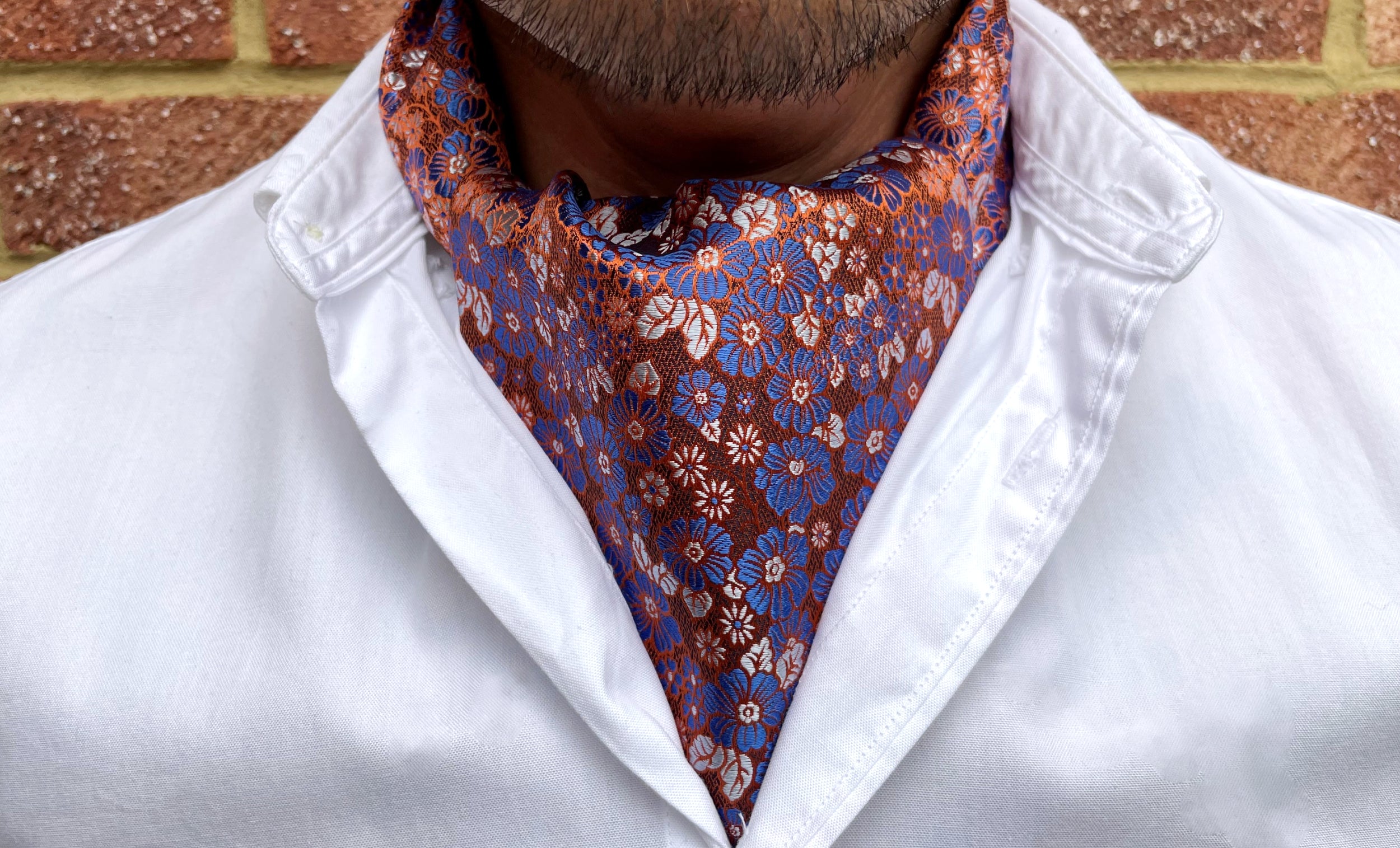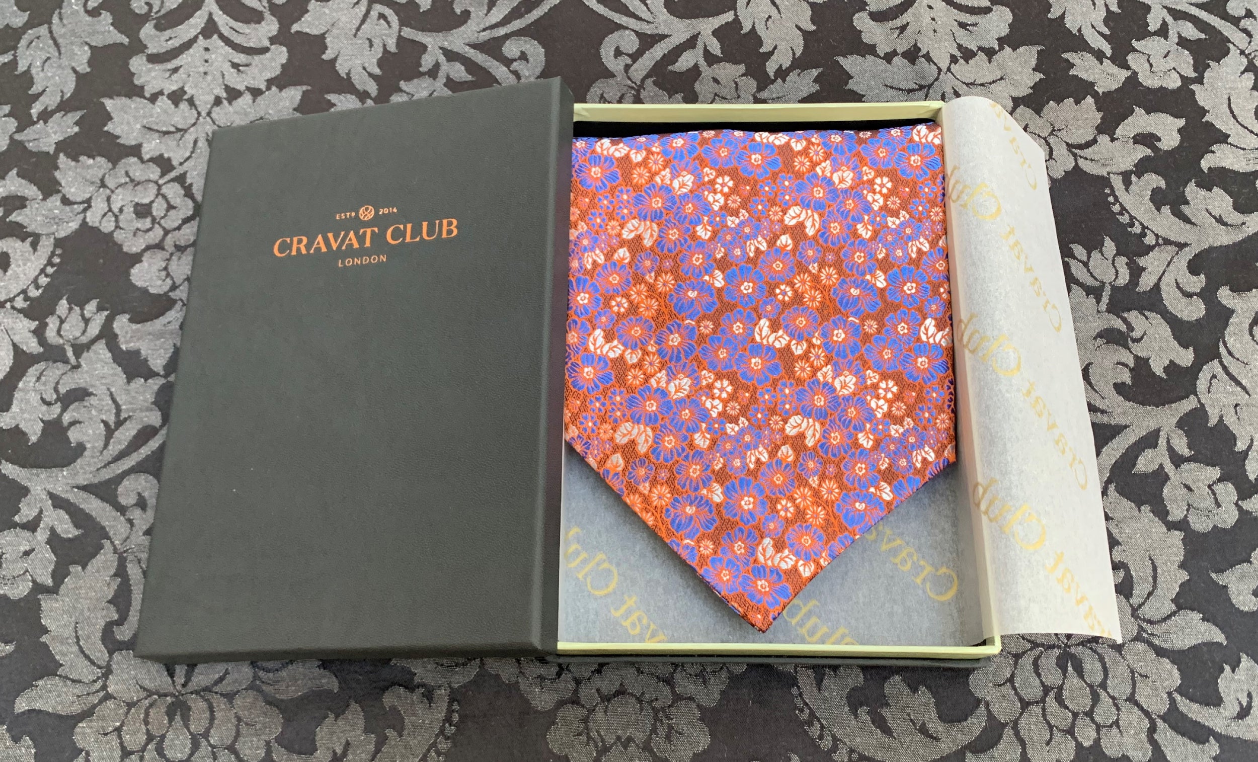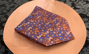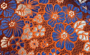 Burnt Orange with Japanese Denim Blue & Platinum Silver Floral Pattern