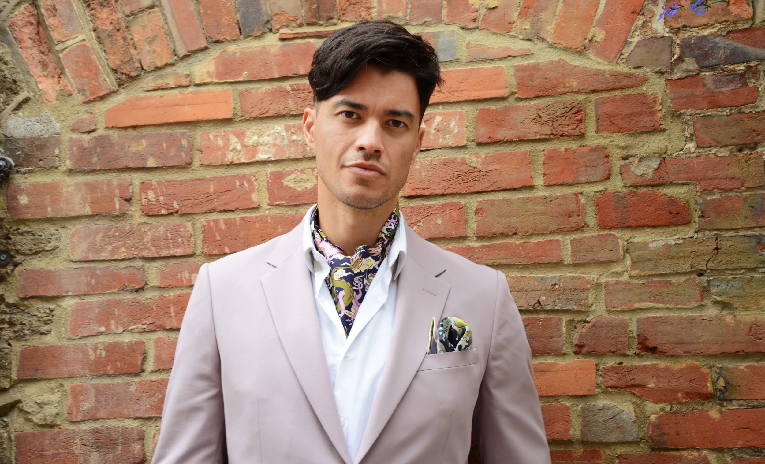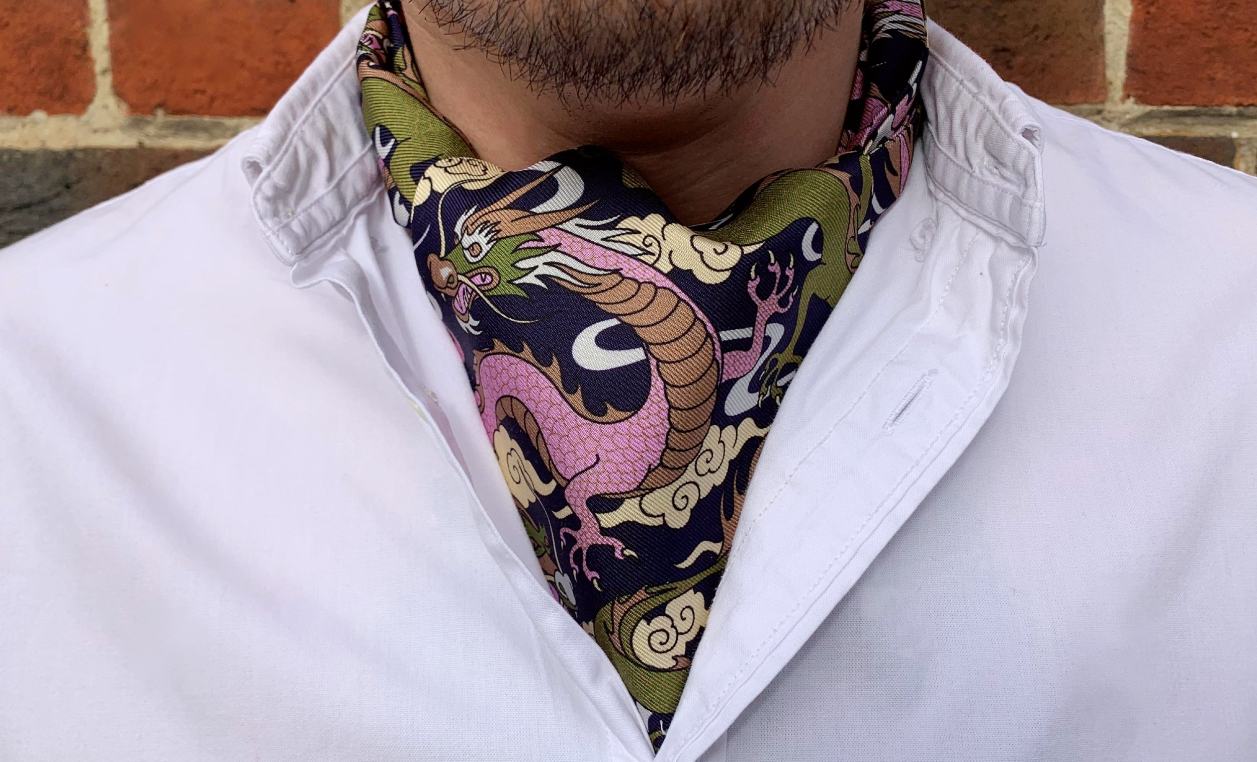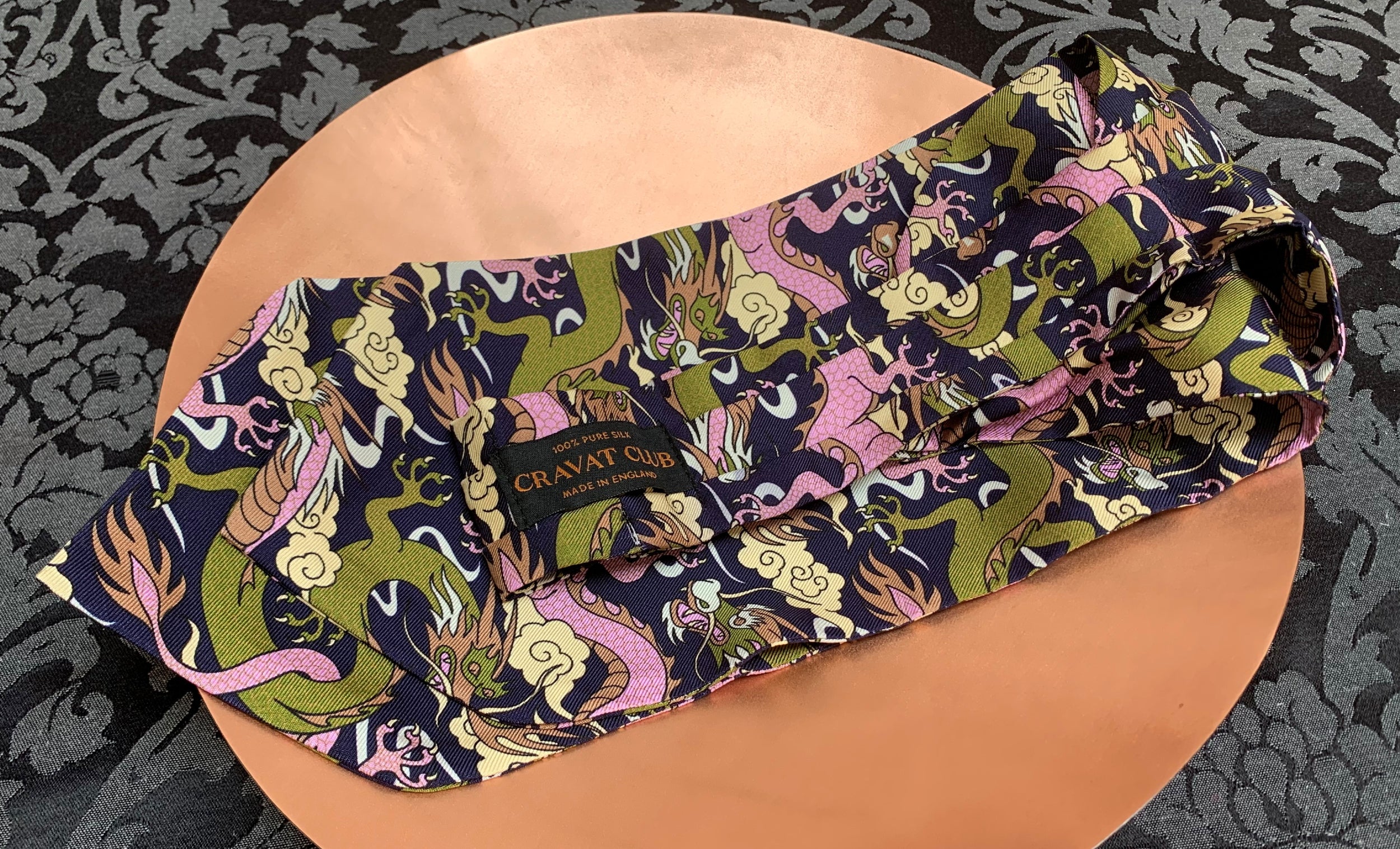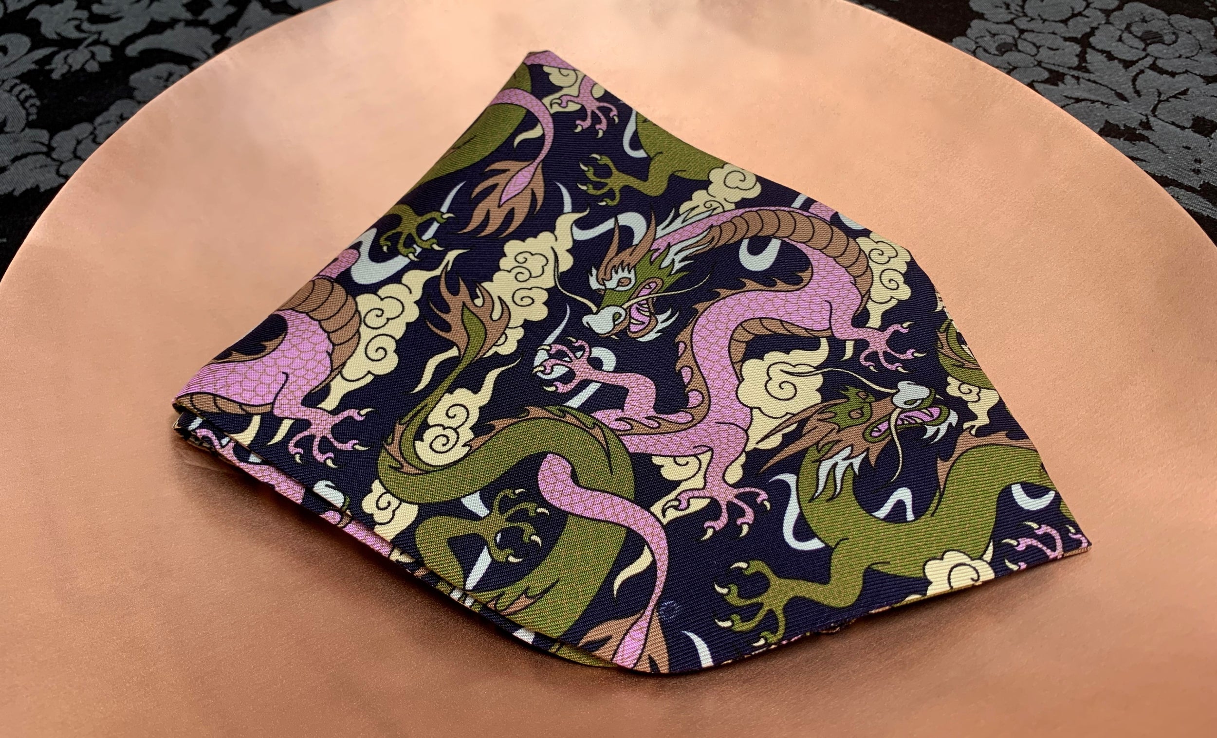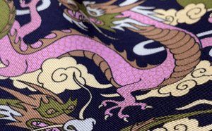 Navy with Orchid Pink, Olive Green, Café Au Lait & Vanilla Japanese Dragon Print