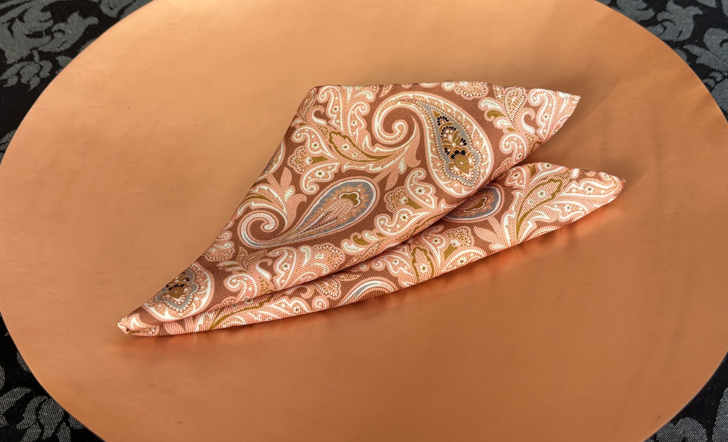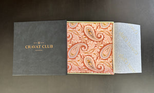 Coffee Brown with Strawberry Cream, Cloud Grey, Olive & White Paisley Pattern Printed Silk Pocket Square