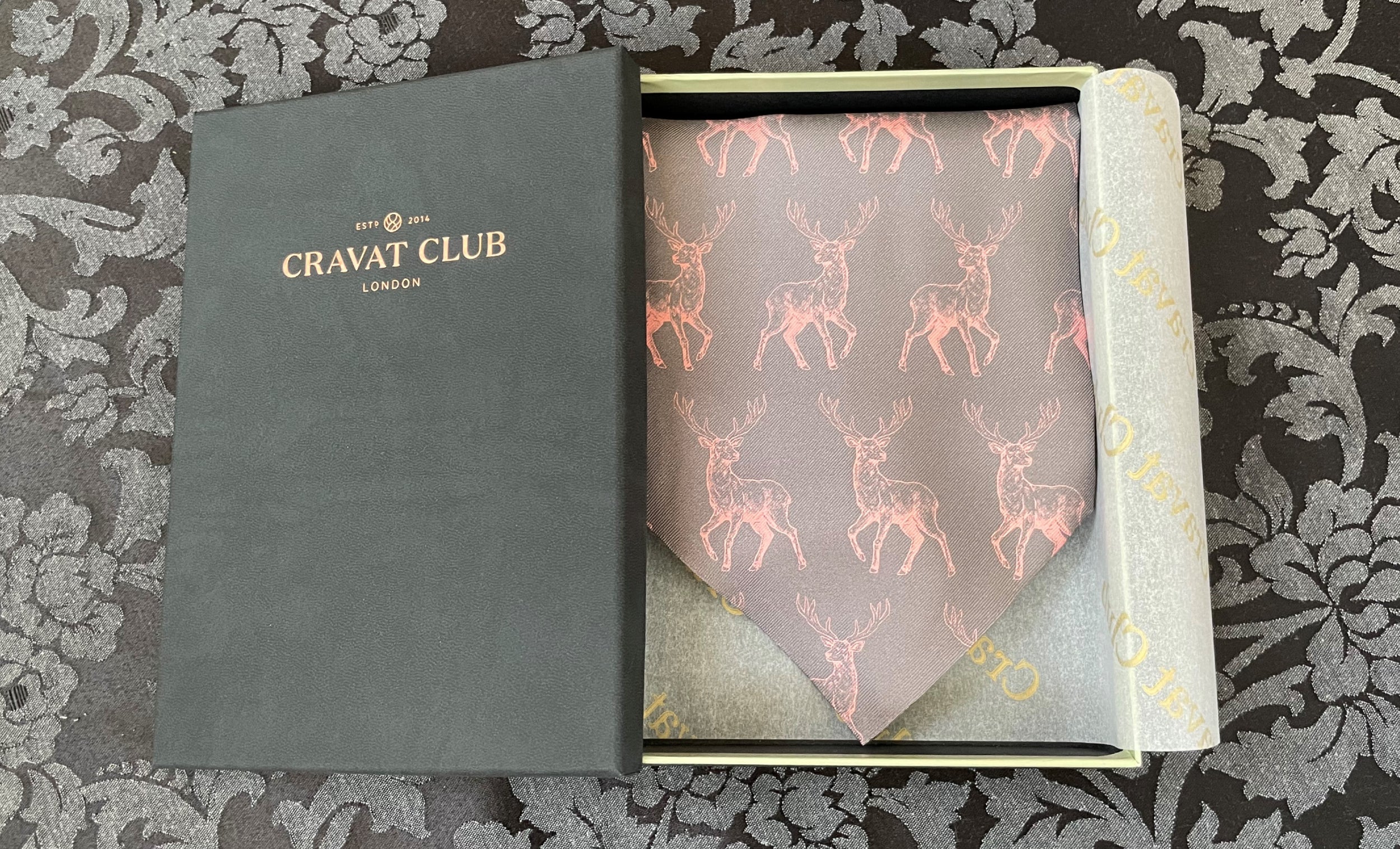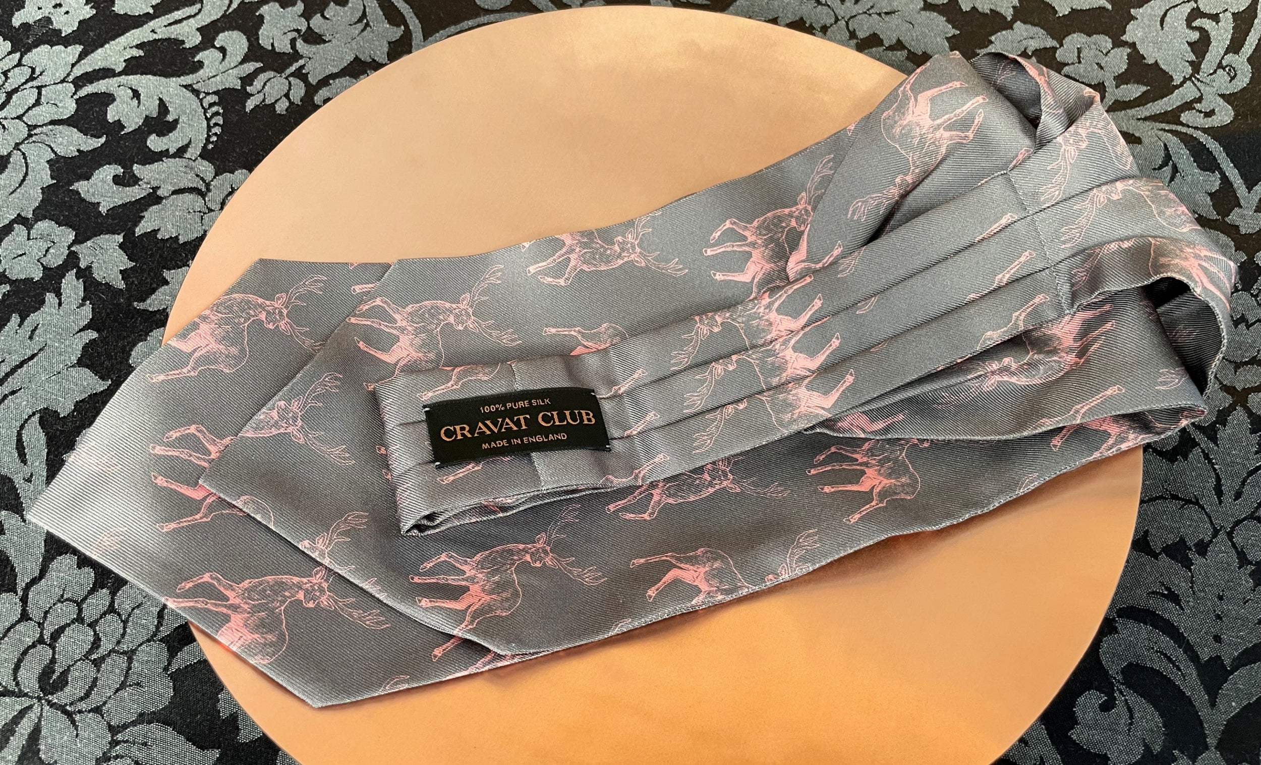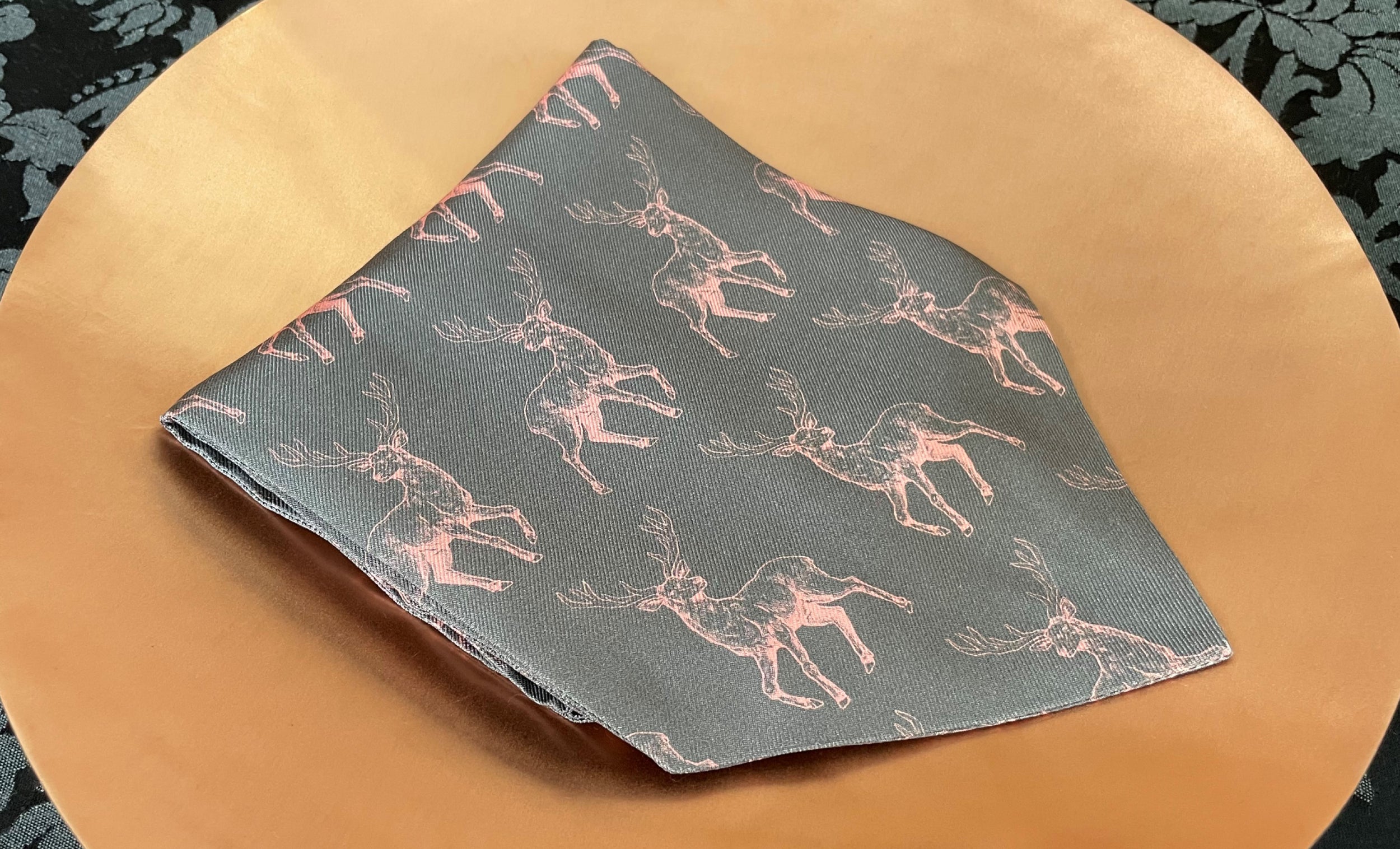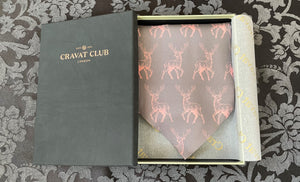 Thunder Grey with Blossom Pink Woodland Deer Pattern Printed Silk Cravat