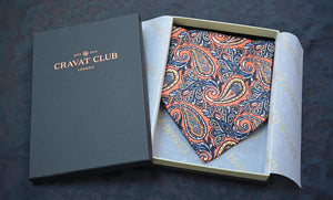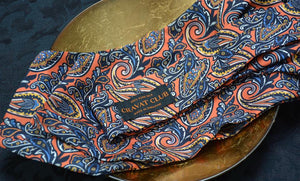 Pastel Orange with Navy, Naples Yellow, White & Cornflower Blue Paisley Pattern