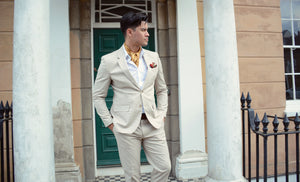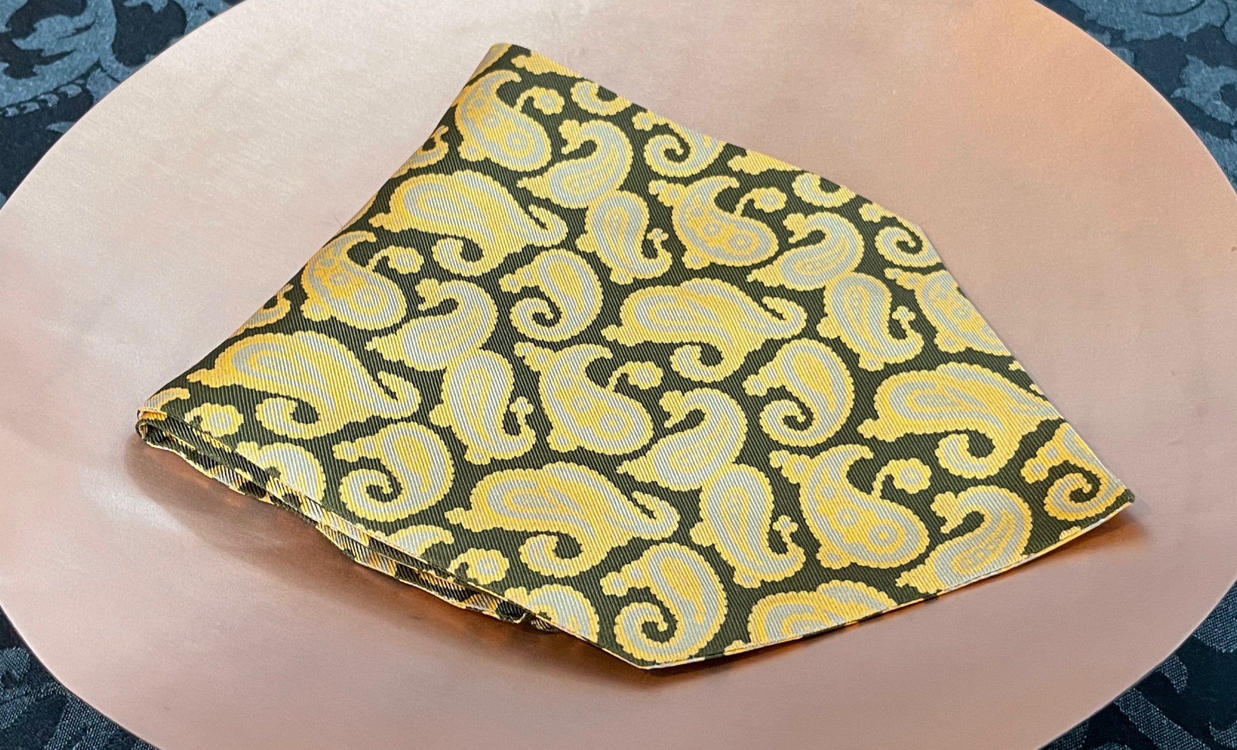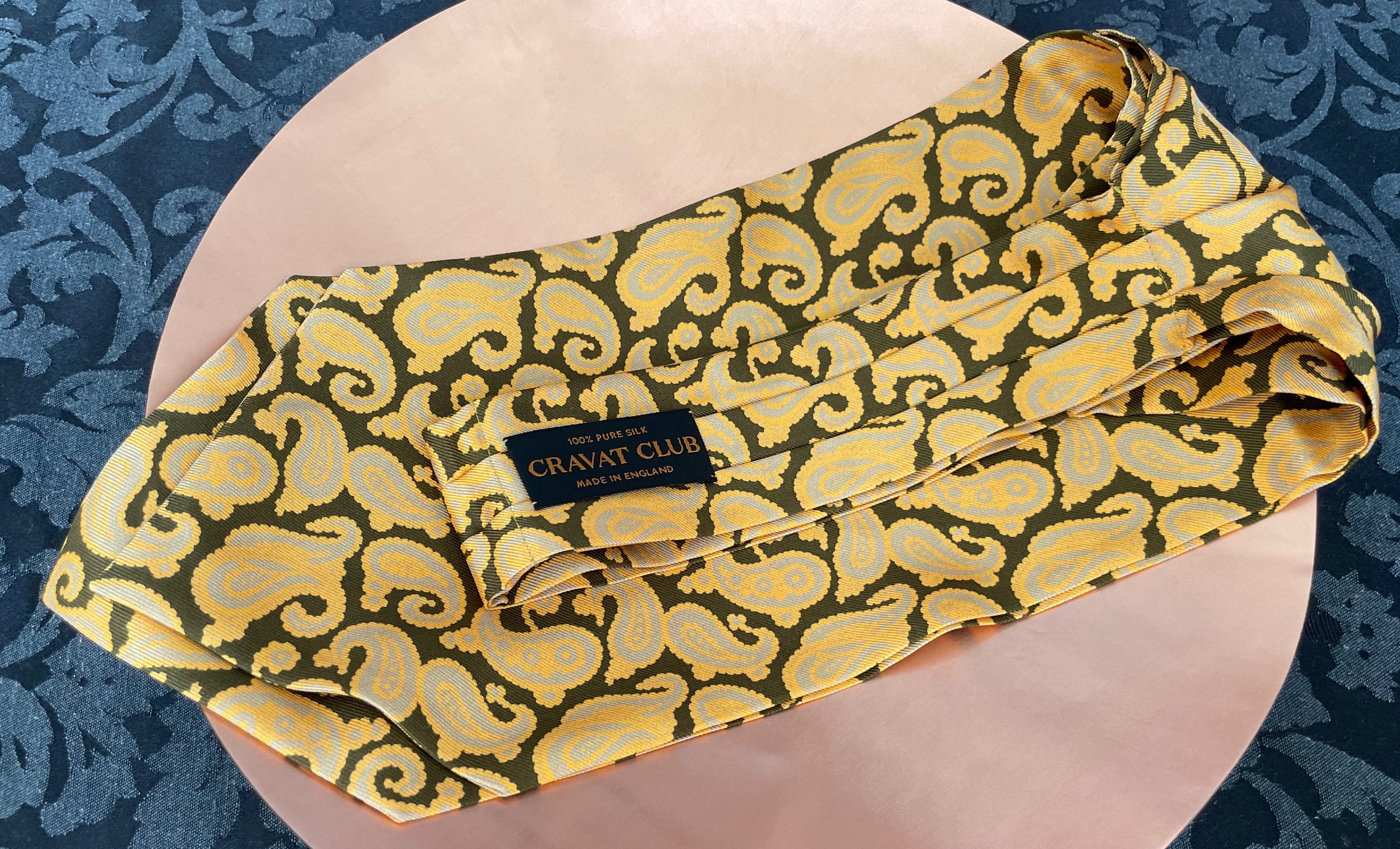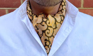 Muddy Green with Cloud Grey & Warm Sand Small Paisley Design Printed Silk Cravat