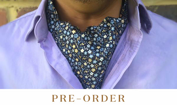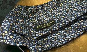 Navy with Maize Yellow, Powder Blue & White Small Floral Pattern