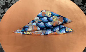Powder Blue with Golden Yellow, Fiery Orange, Lemon Cream, Virginia, Paradise & Navy Blue Koi Carp Ukiyo-e Print Silk Pocket Square