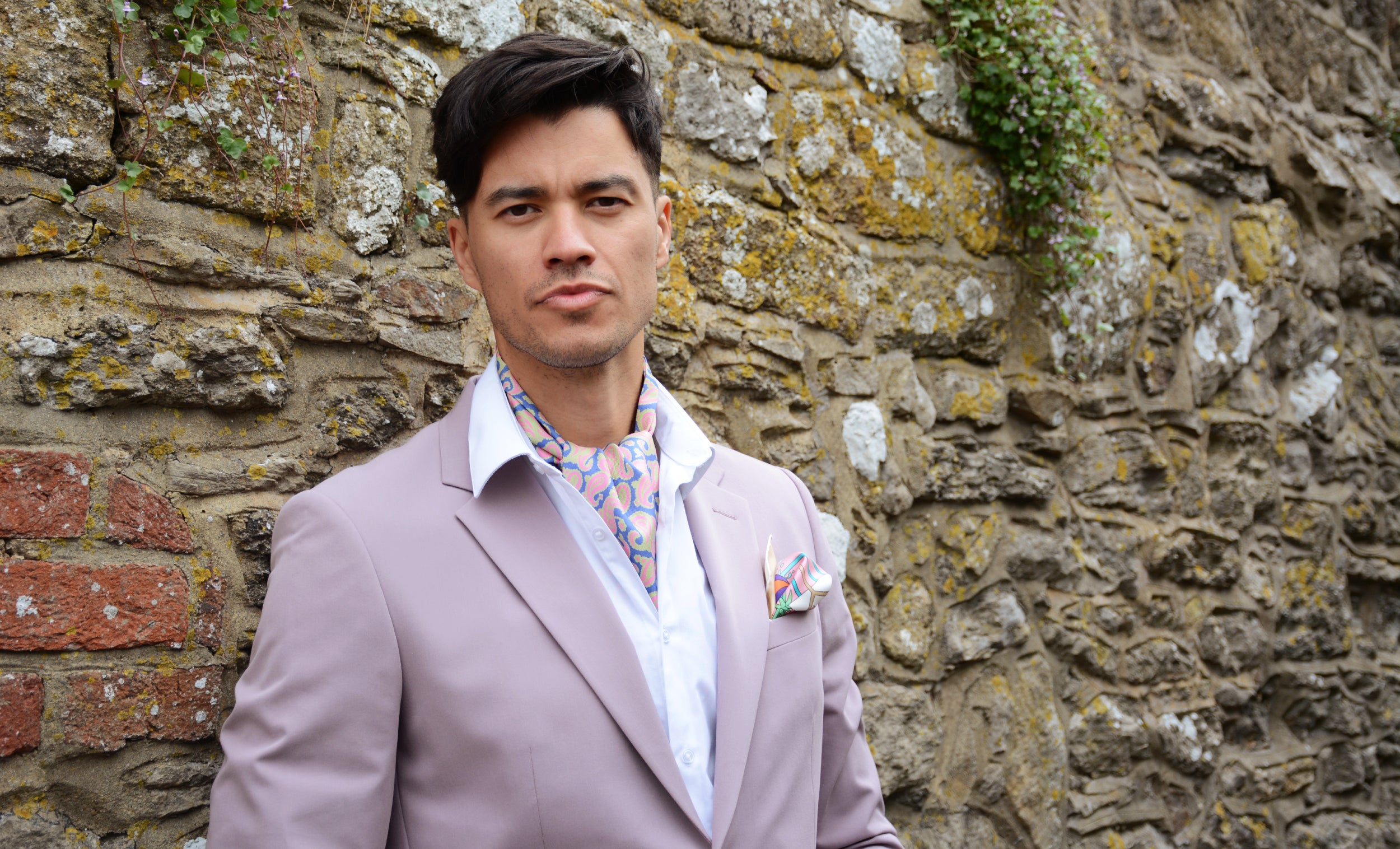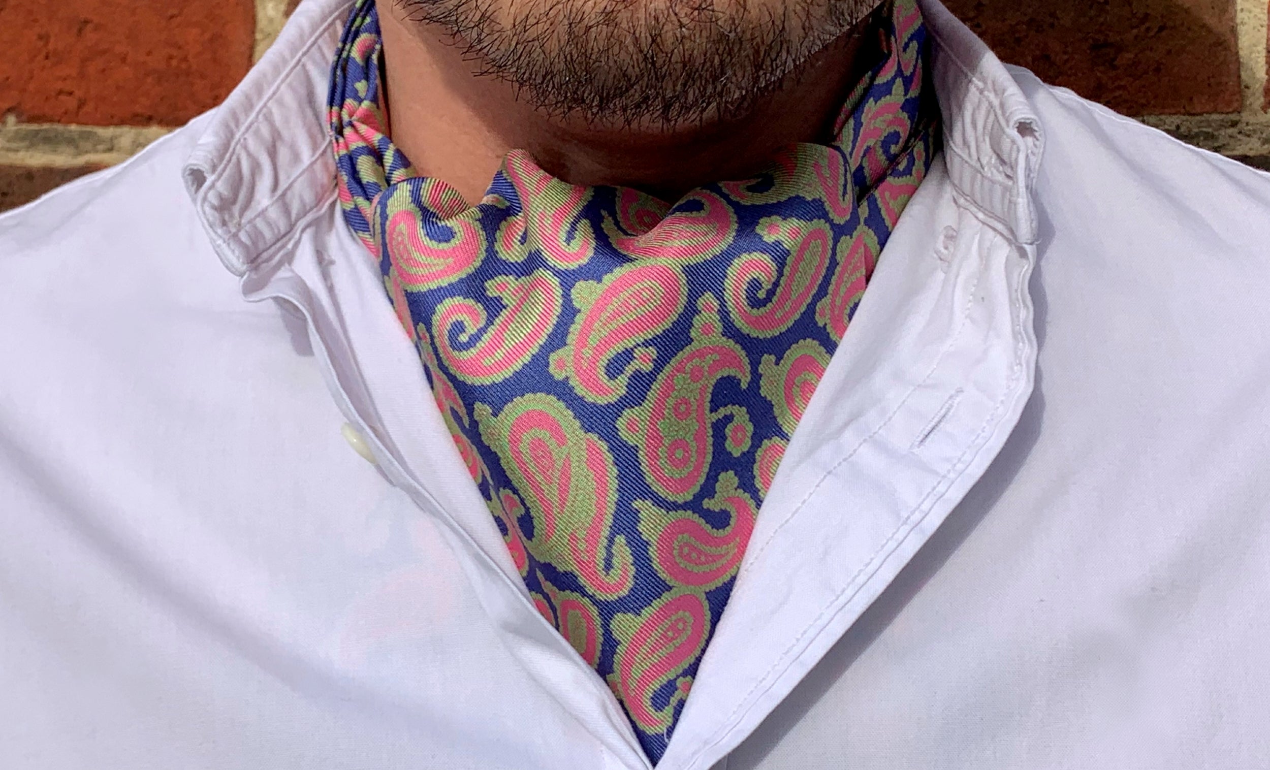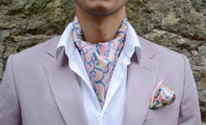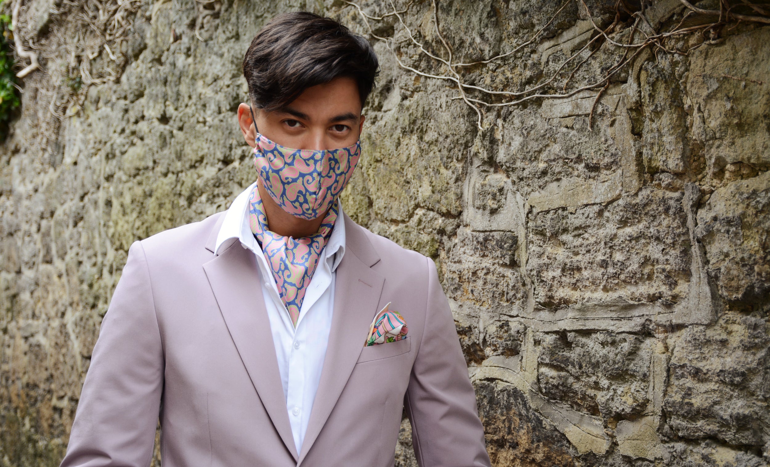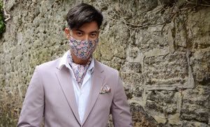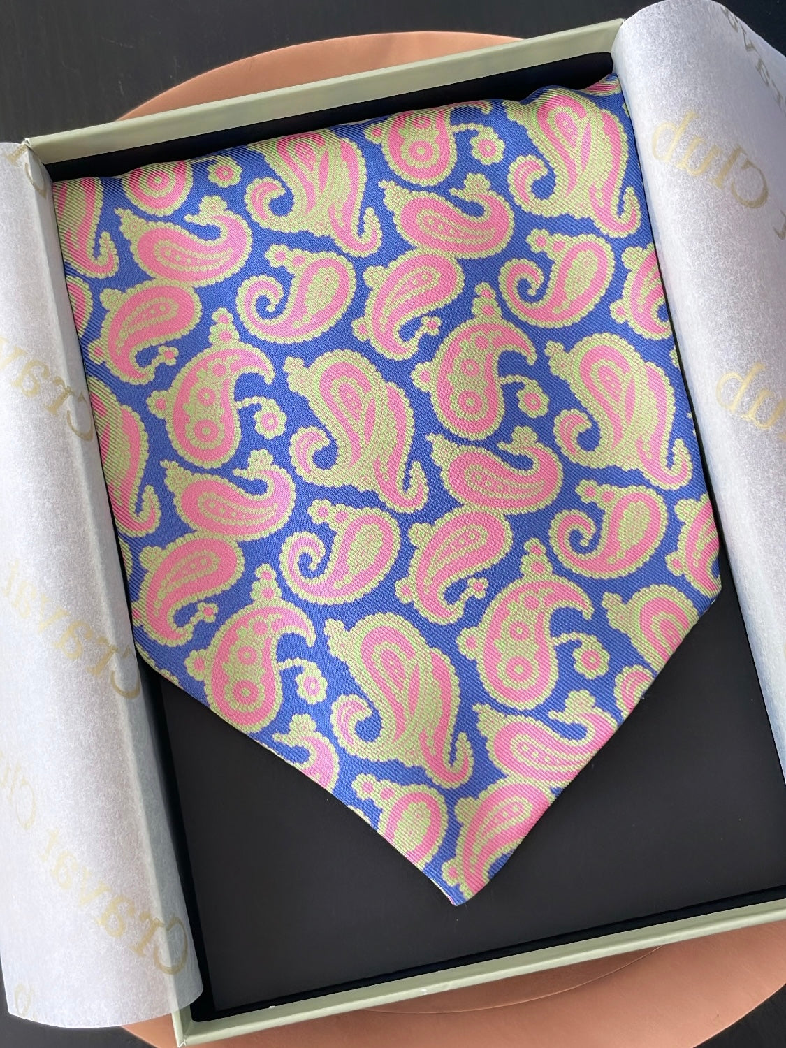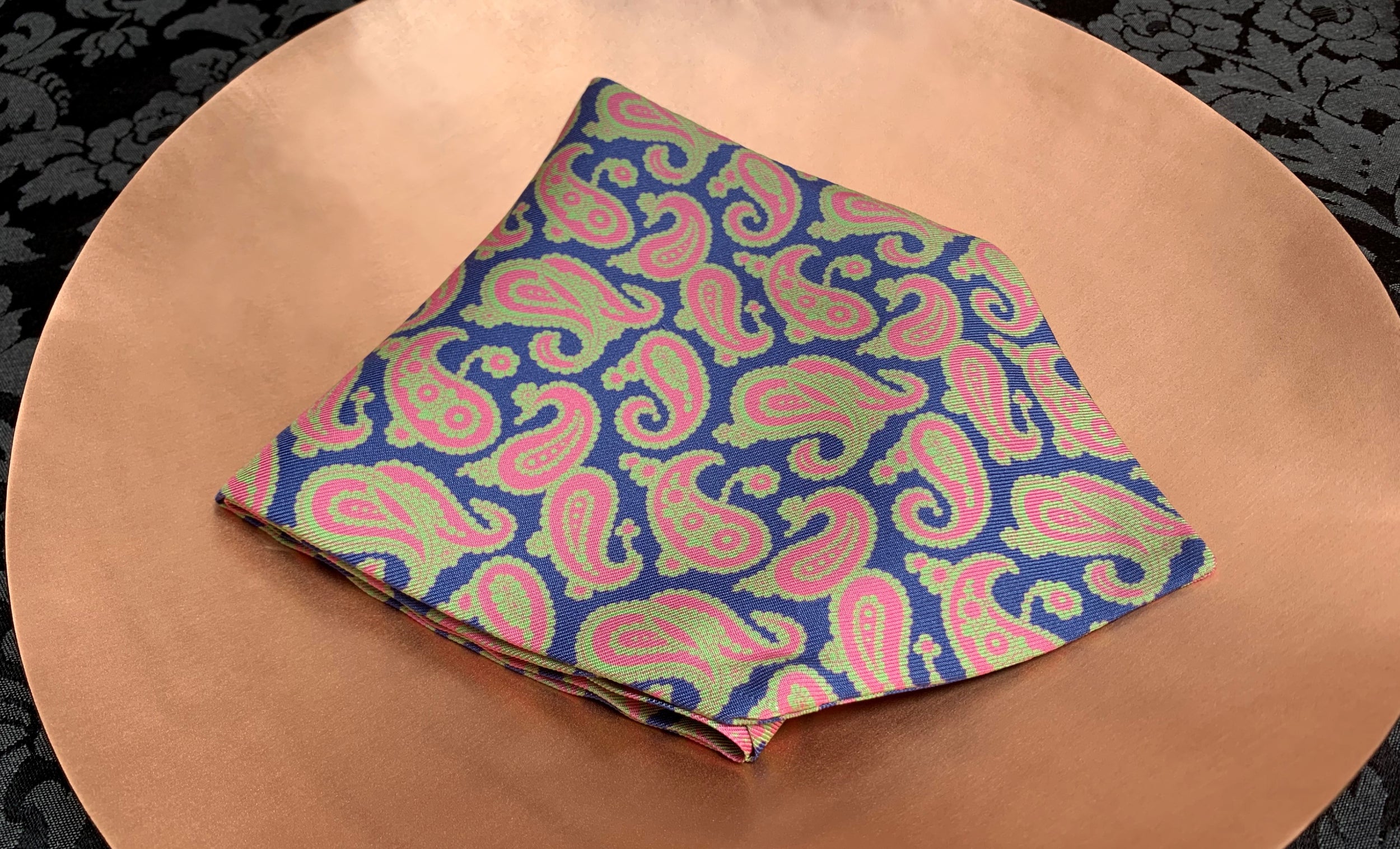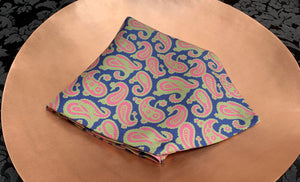 Japanese Denim Blue with Cotton Candy Pink & Olive Green Small Paisley Pattern