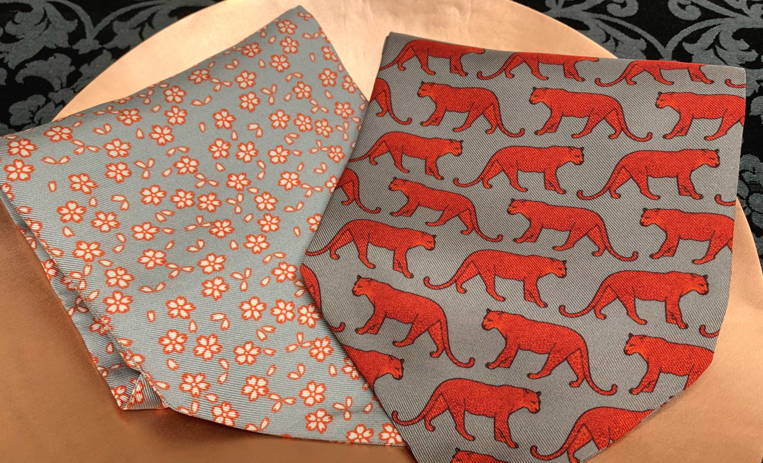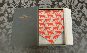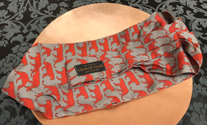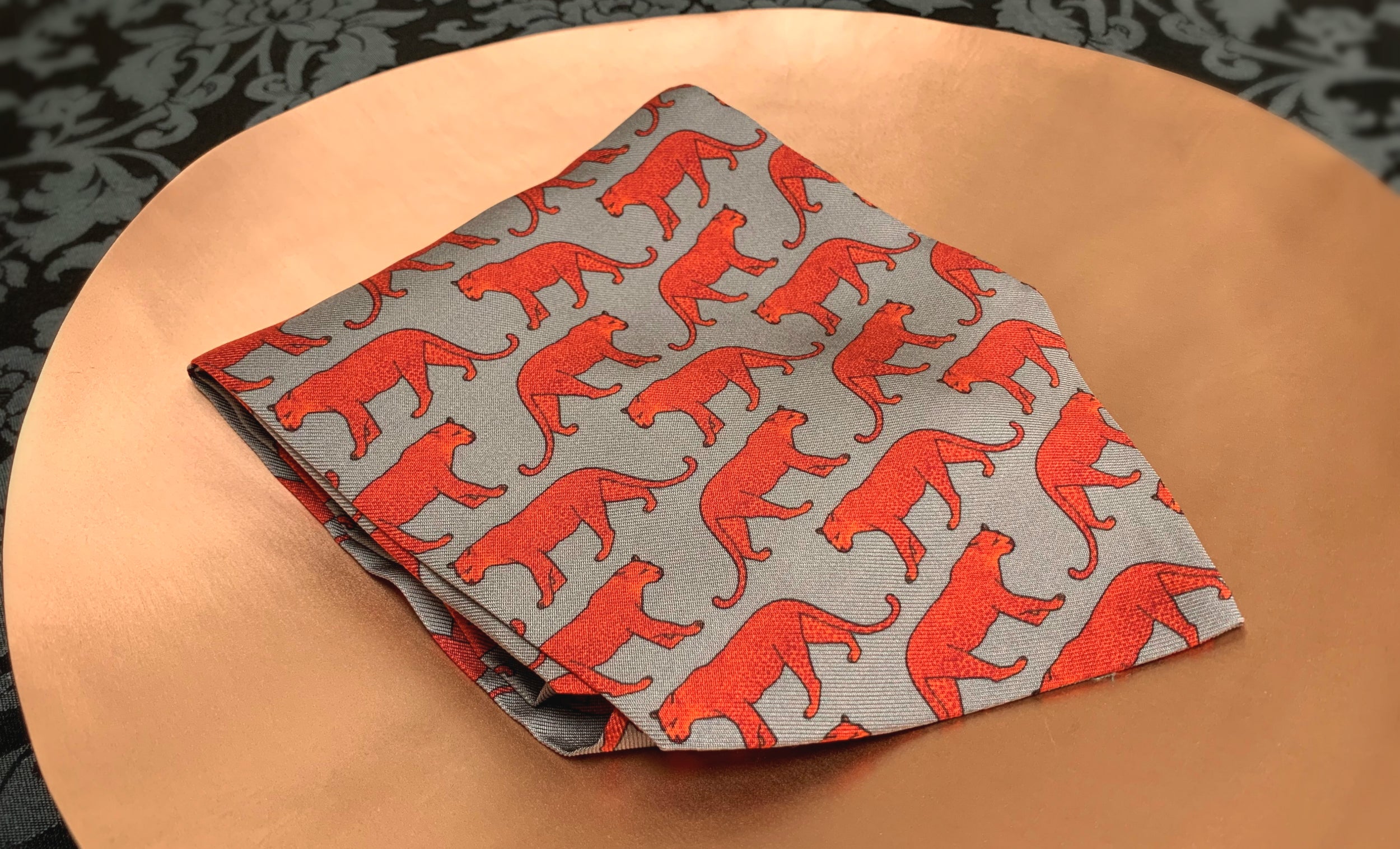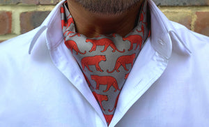 Smoke Grey with Carmine Red Leopards Printed Silk Cravat